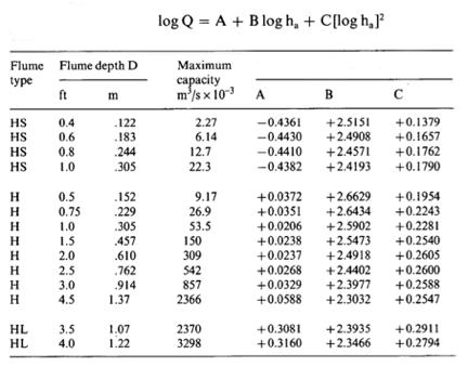 H Flume Discharge Equations